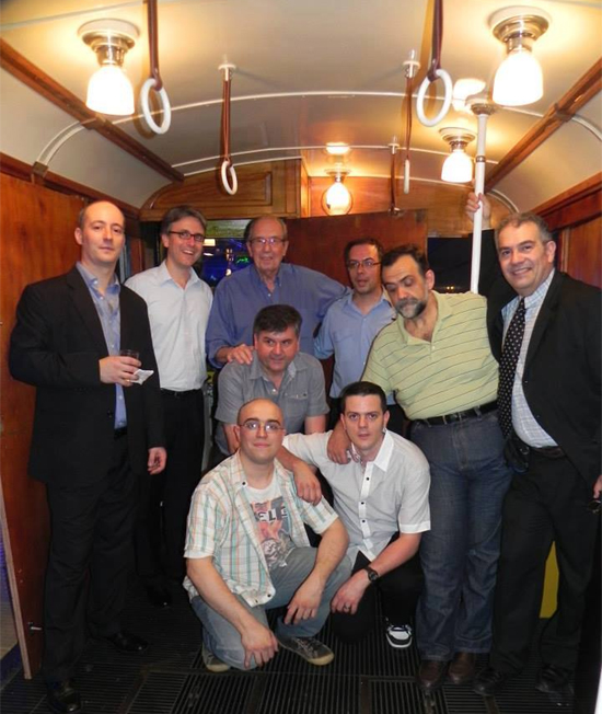 Parte del equipo de la Asociación Amigos del Tranvía en el festejo del centenario.