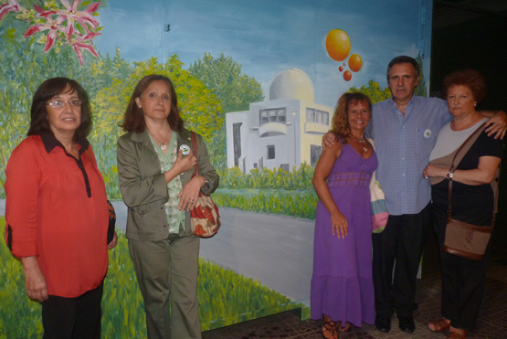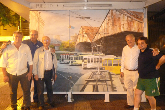 Aquilino González Podestá y sus amigos tranviarios junto al Mural de la Estación Polvorín.