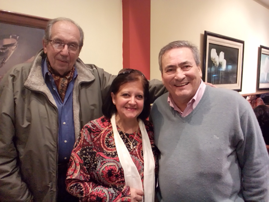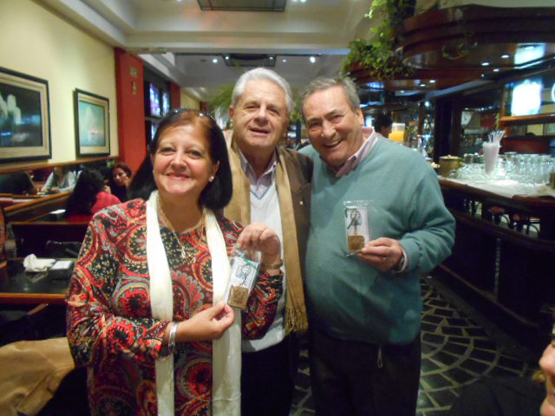 Marina y Arnaldo con Roberto Nardi del Club Ferro Carril Oeste, recibiendo un presente.