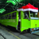 Conduce PAPÁ NOEL el coche «Lagarto» PM2, una reconstrucción total realizada por los Amigos del Tranvía.