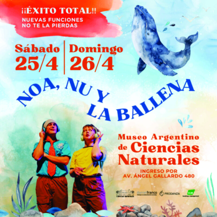 El Museo Argentino de Ciencias Naturales  invita a sumergirte en “Noa, Nu y la Ballena”, una experiencia teatral única que combina danza, teatro, música, radio y biología para hablar del fascinante mundo de las ballenas y la importancia de cuidar nuestros océanos.